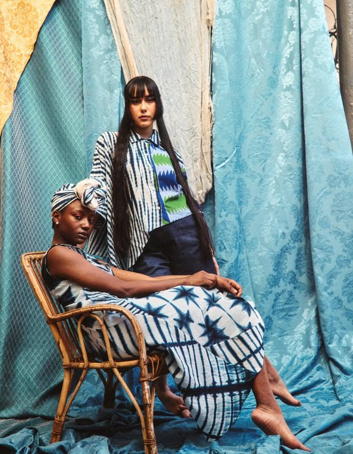An inclusive woman representing the visionary fusion of luxury and heritage using Adire silk.